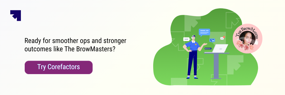 The BrowMasters activated ten Corefactors licenses for the sales and training teams. The new setup supported higher lead volumes and more team members without losing control.