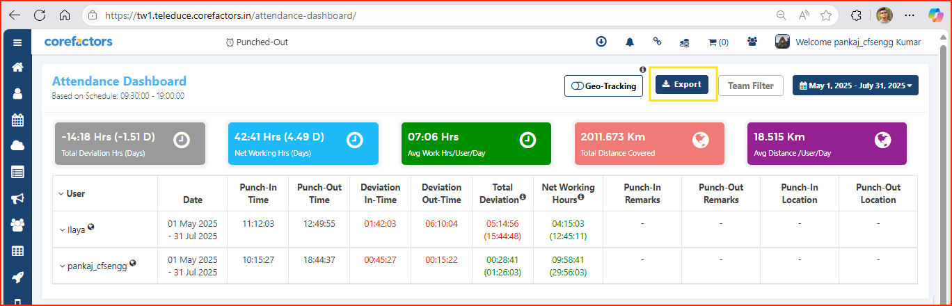 You can now export attendance data directly from the Attendance Dashboard for deeper analysis and reporting.